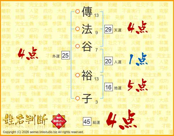 傳法谷裕子さんの総運は45画の4点!