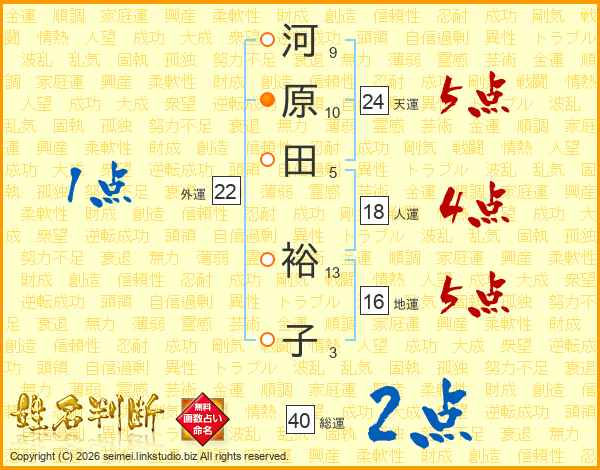 河原田裕子さんの総運は40画の2点!