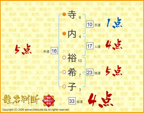 寺内裕希子さんの総運は33画の4点!
