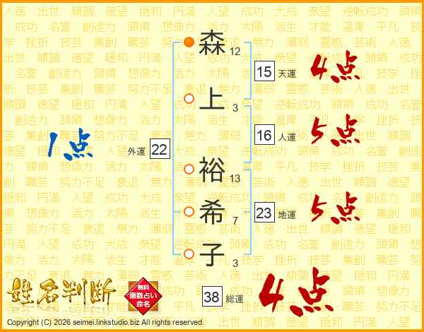 森上裕希子さんの総運は38画の4点!