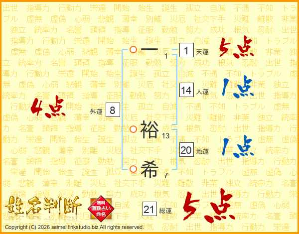 一裕希さんの総運は21画の5点!