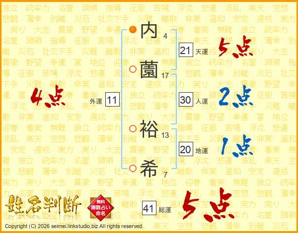 内薗裕希さんの総運は41画の5点!