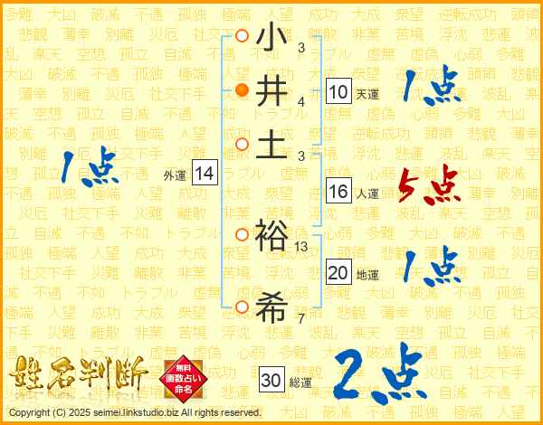 小井土裕希さんの総運は30画の2点!