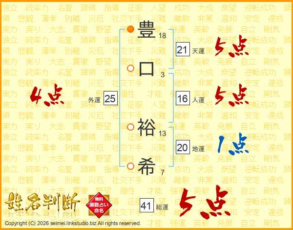 豊口裕希さんの総運は41画の5点!