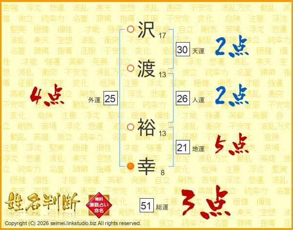 沢渡裕幸さんの総運は51画の3点!