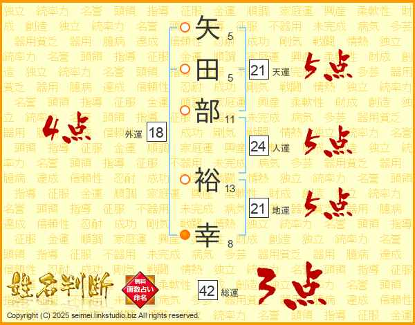 矢田部裕幸さんの地運は21画の5点!