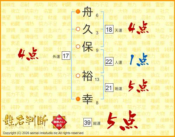 舟久保裕幸さんの総運は39画の5点!