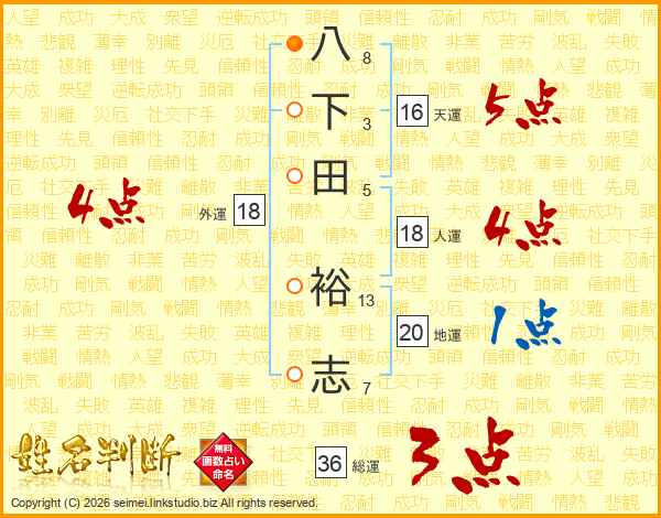 八下田裕志さんの人運は18画の4点!