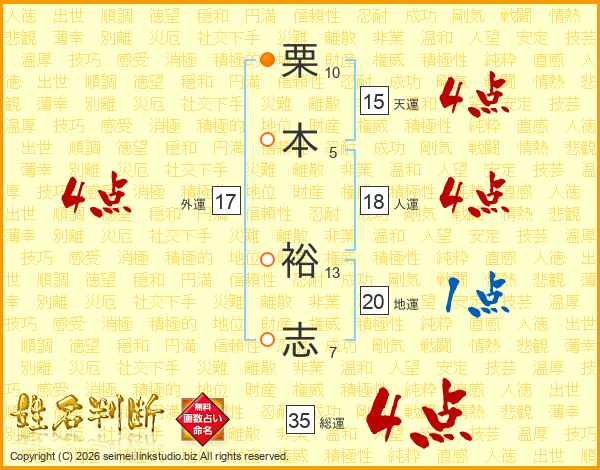 栗本裕志さんの総運は35画の4点!