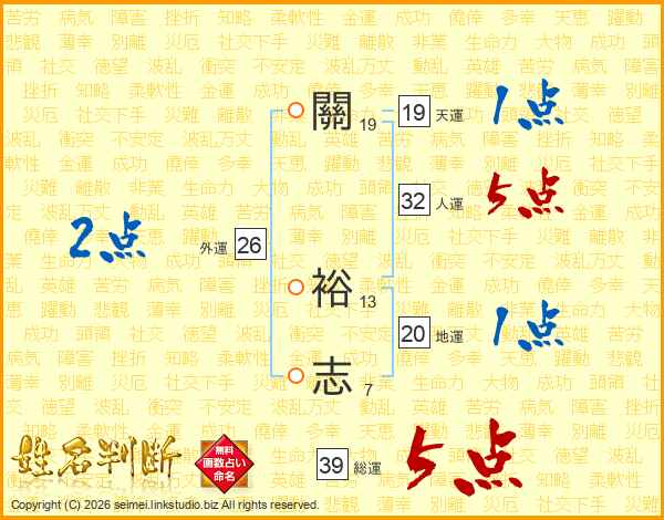 關裕志さんの総運は39画の5点!