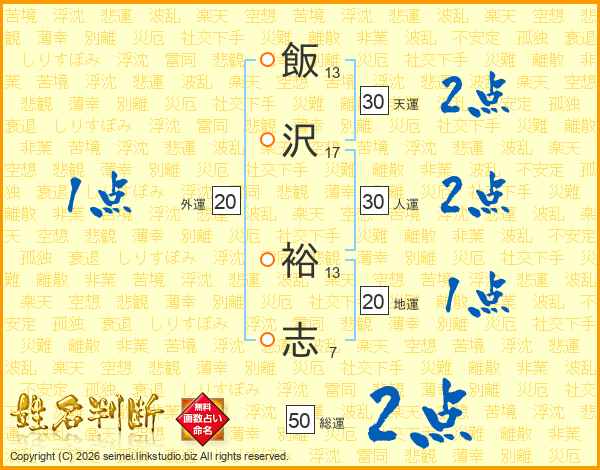 飯沢裕志さんの人運は30画の2点!
