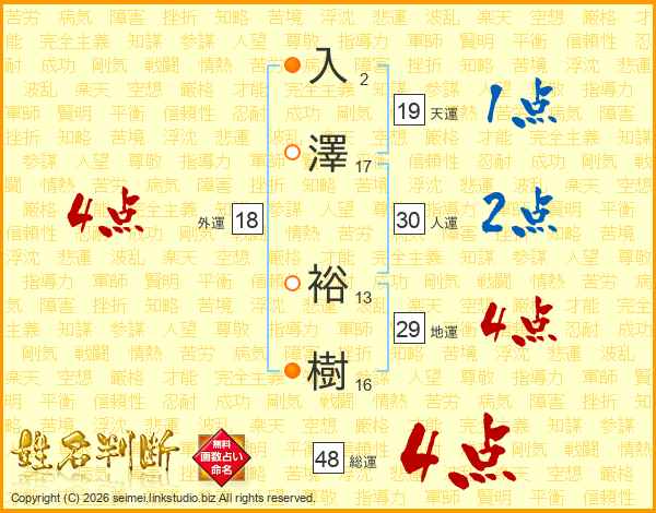 入澤裕樹さんの総運は48画の4点!