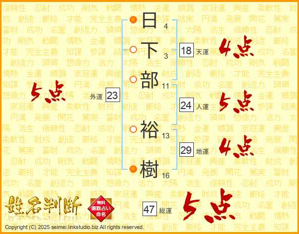 日下部裕樹さんの総運は47画の5点!