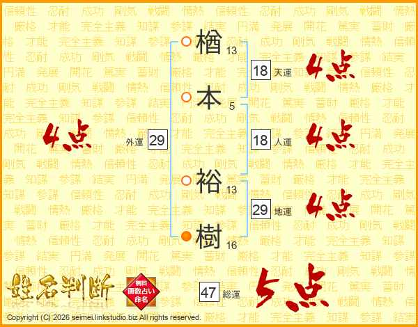 楢本裕樹さんの総運は47画の5点!