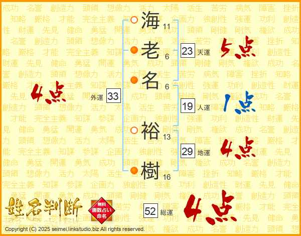 海(11画)老(6画)名(6画) 裕(13画)樹(16画)