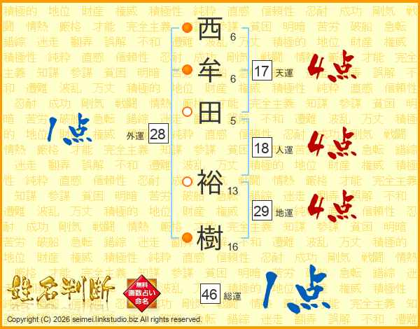 西牟田裕樹さんの天運は17画の4点!