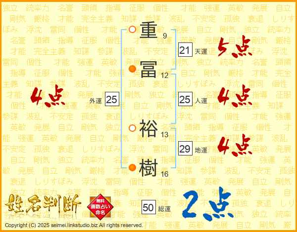 重(9画)冨(12画) 裕(13画)樹(16画)