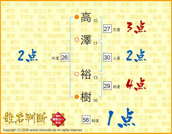 高澤裕樹さんの総運は56画の1点!