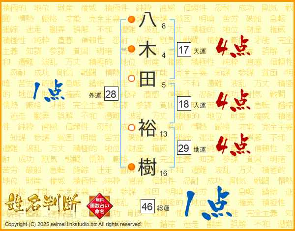 八(8画)木(4画)田(5画) 裕(13画)樹(16画)