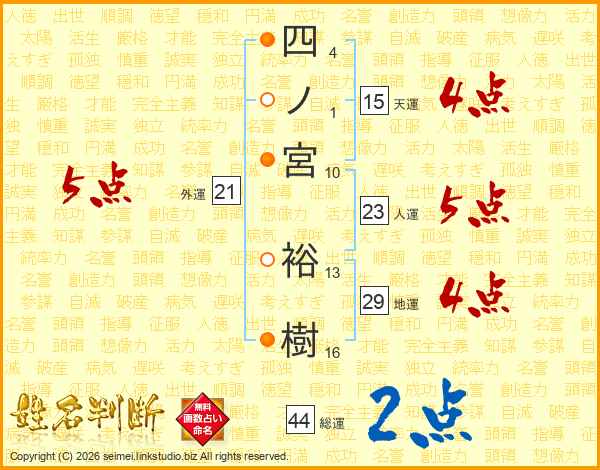 四ノ宮裕樹さんの総運は44画の2点!