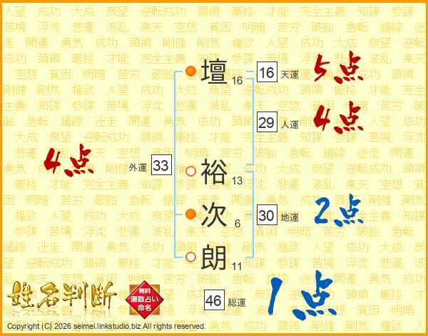 壇裕次朗さんの外運は33画の4点!