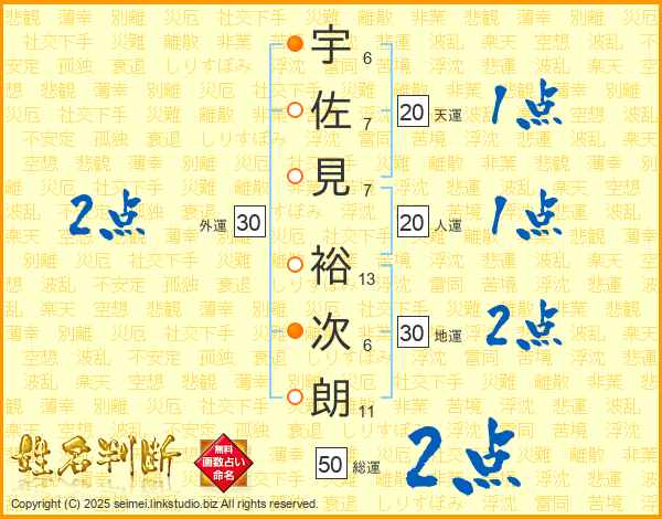 宇佐見裕次朗さんの人運は20画の1点!