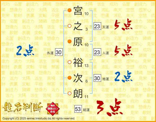 宮之原裕次朗さんの総運は53画の3点!