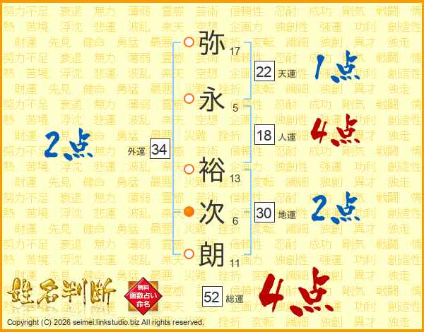 弥永裕次朗さんの総運は52画の4点!