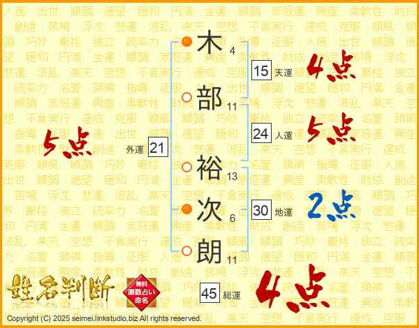 木部裕次朗さんの総運は45画の4点!