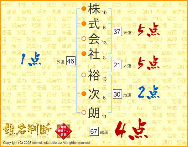 株(10画)式(6画)会(13画)社(8画) 裕(13画)次(6画)朗(11画)