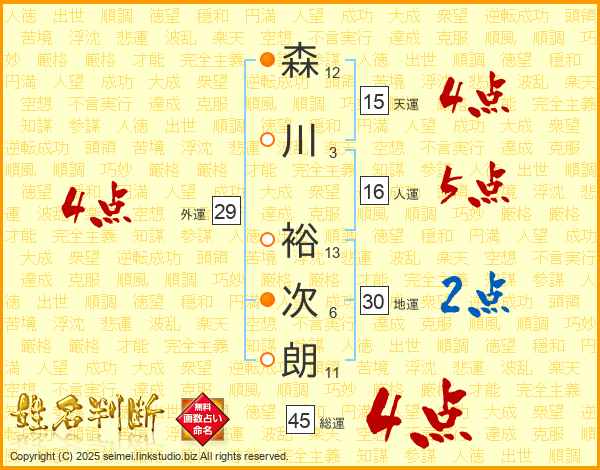 森川裕次朗さんの総運は45画の4点!