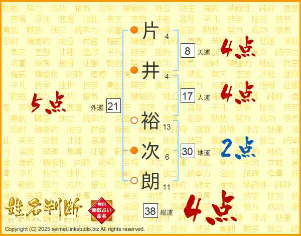 片(4画)井(4画) 裕(13画)次(6画)朗(11画)