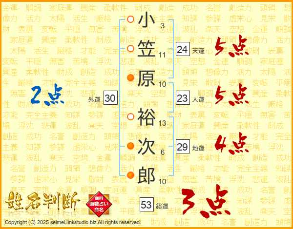 小(3画)笠(11画)原(10画) 裕(13画)次(6画)郎(10画)