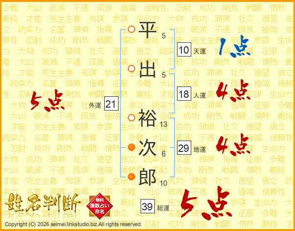 平出裕次郎さんの総運は39画の5点!