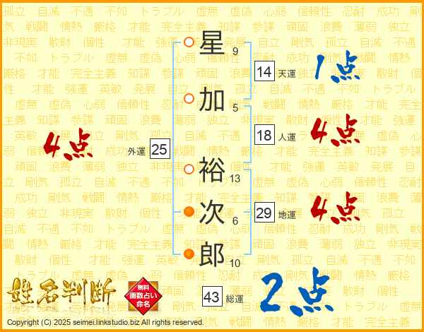 星(9画)加(5画) 裕(13画)次(6画)郎(10画)