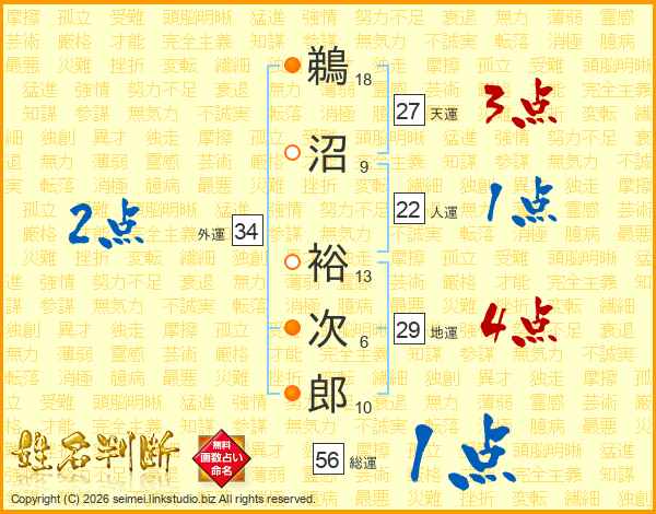 鵜沼裕次郎さんの総運は56画の1点!