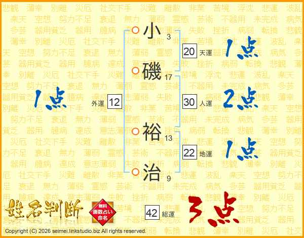 小磯裕治さんの人運は30画の2点!