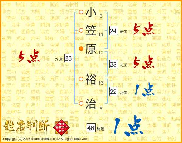 小笠原裕治さんの総運は46画の1点!