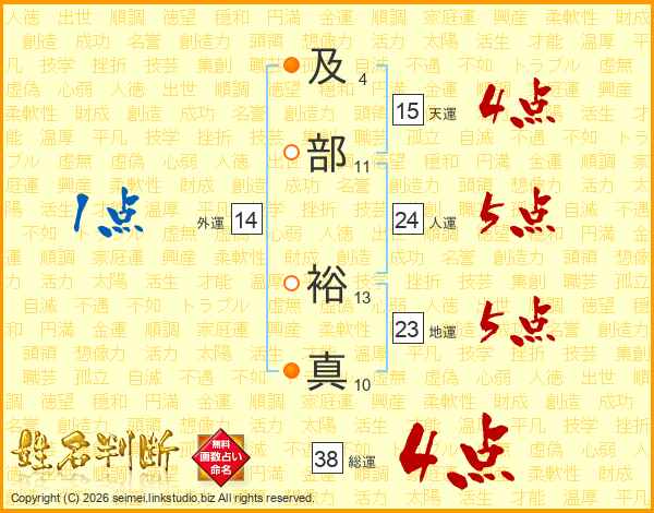 及部裕真さんの総運は38画の4点!