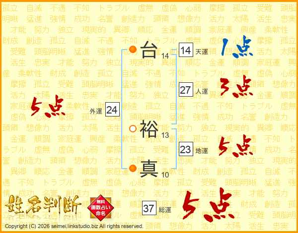 台裕真さんの総運は37画の5点!