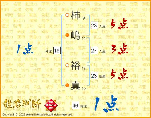 柿嶋裕真さんの総運は46画の1点!