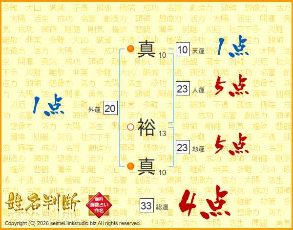真裕真さんの総運は33画の4点!