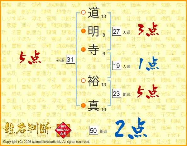 道明寺裕真さんの外運は31画の5点!