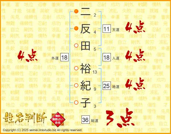 二反田裕紀子さんの地運は25画の4点!