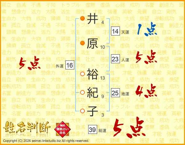 井(4画)原(10画) 裕(13画)紀(9画)子(3画)