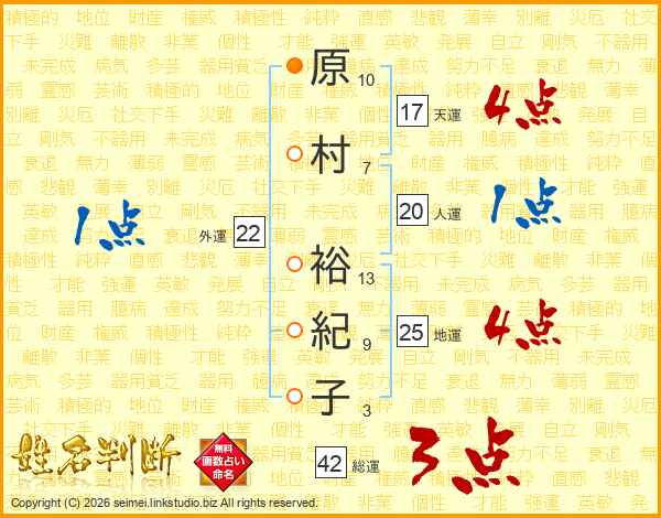 原村裕紀子さんの地運は25画の4点!