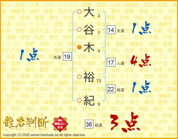 大谷木裕紀さんの総運は36画の3点!