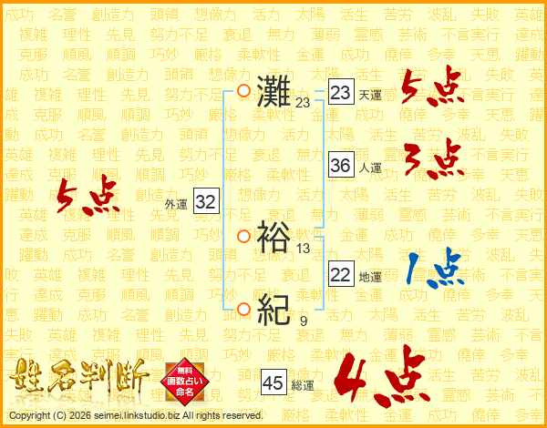 灘裕紀さんの総運は45画の4点!