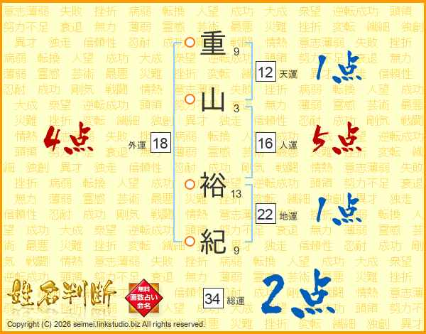 重山裕紀さんの総運は34画の2点!