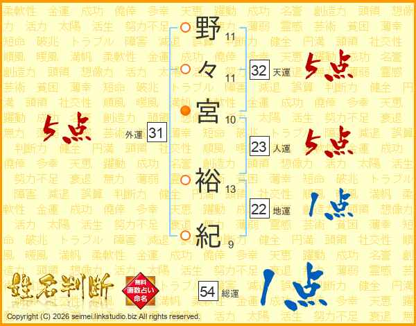 野々宮裕紀さんの外運は31画の5点!